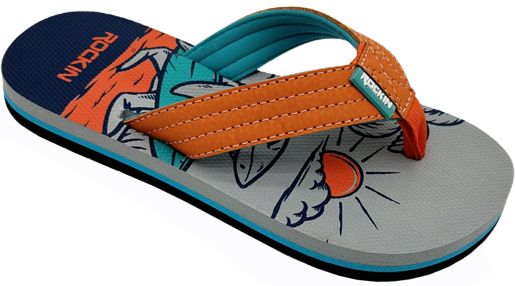 ROCKIN GRAY "SURF SHARK" KIDS FLIP FLOPS
